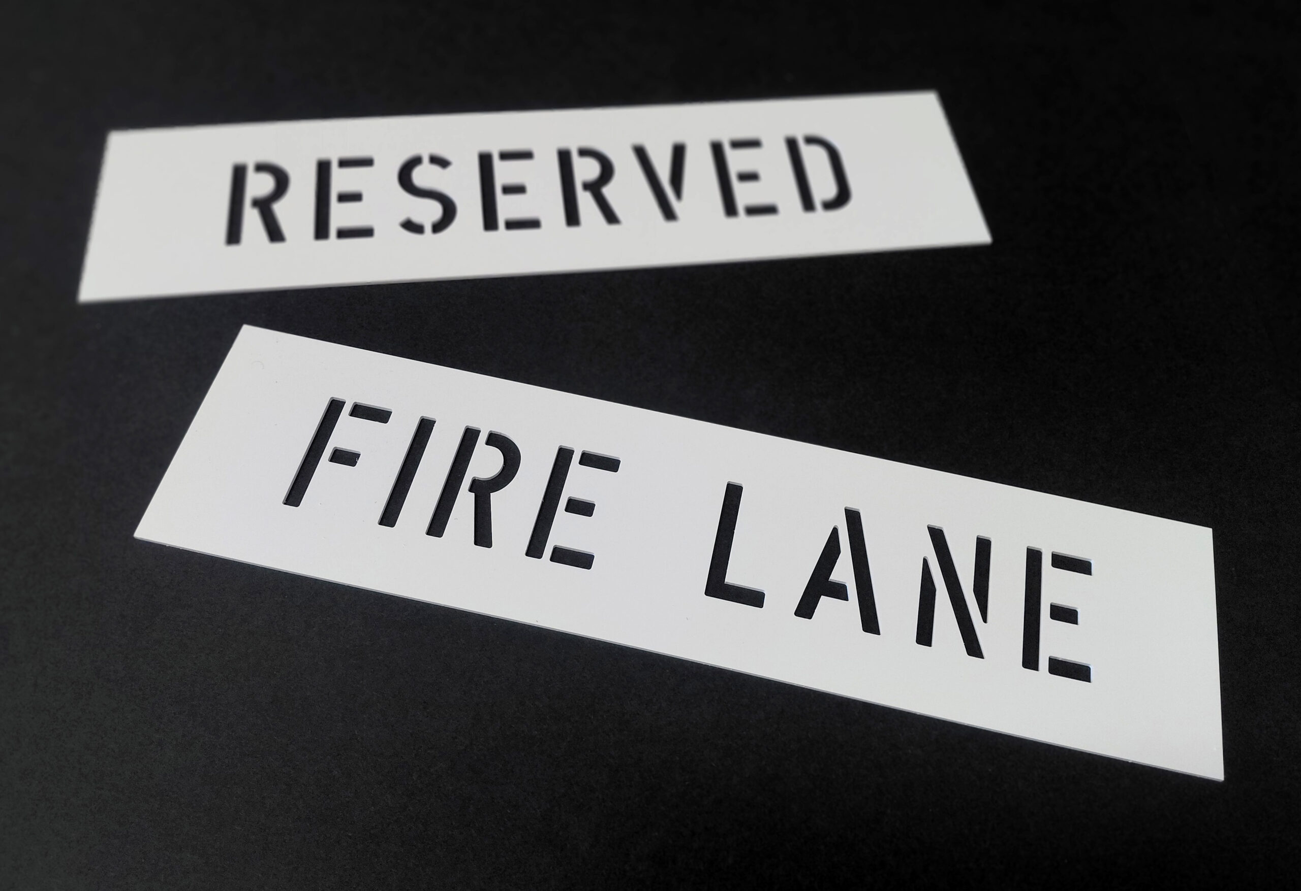Reusable custom stencils, up to 4 feet by 8 feet in side. Solid, durable styrene is infinitely reusable and works on any surface. Our stencils are easy to clean.
